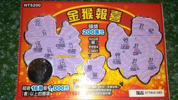金猴報喜的編號左邊發財流水號藏1000元以上高獎金機率(看教學圖參考)