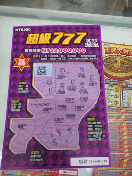 (代表刮刮樂 金磚帝國 ~超級777等通用號)!