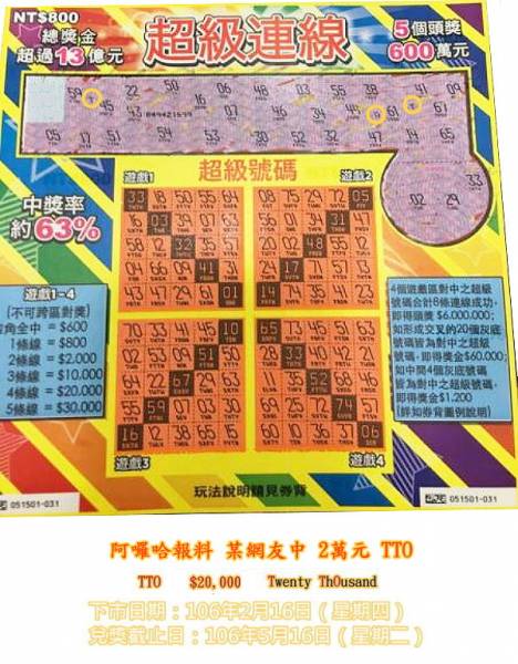 討論版列表 » 刮刮樂討論版 » [分享] (08-17) [登記區]超級連線 熱門冷門刮刮號推薦[增加SZJ THY TTO TTH TEN TWL 號碼 10/13 更新]