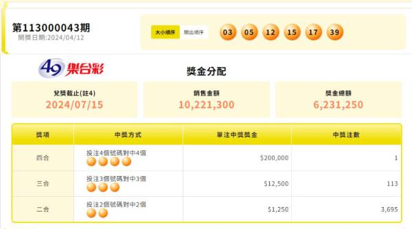 討論版列表 » 大樂透討論版 » [其它] (04-16) [資訊]113年4月12日大樂透開獎結果