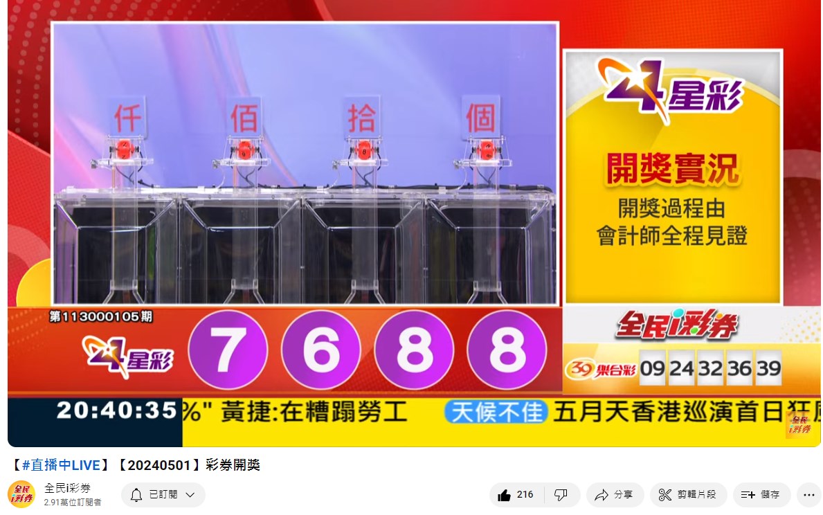 備註: 台彩因給全民兌獎方便,會在電視節目播完後,於全民i彩券YT官方頻道