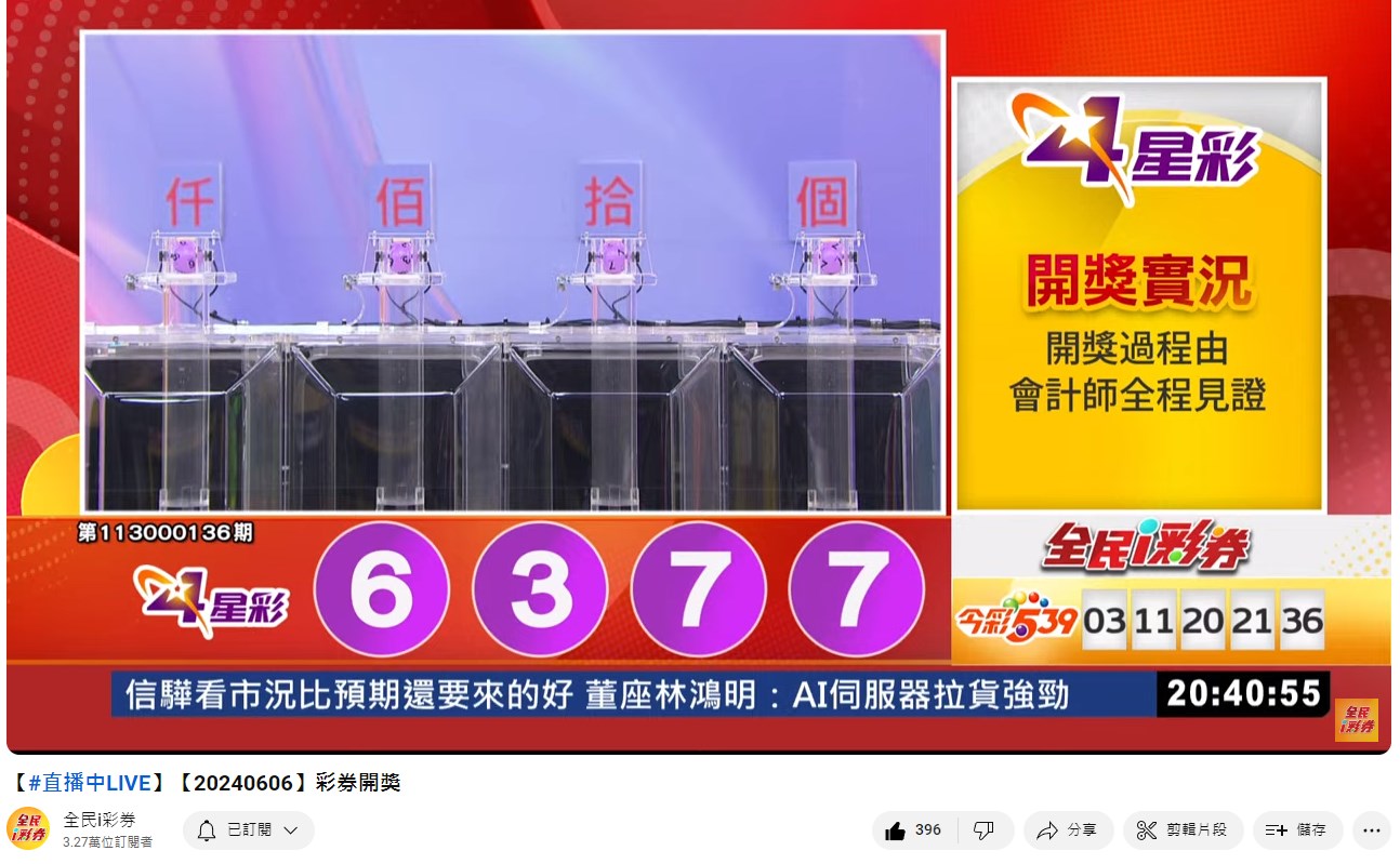 專區【全民i彩券】台灣彩券開獎實況轉播 威力彩、今彩539、三星彩、四星彩 |三立新聞網 SETN.com - YouTube