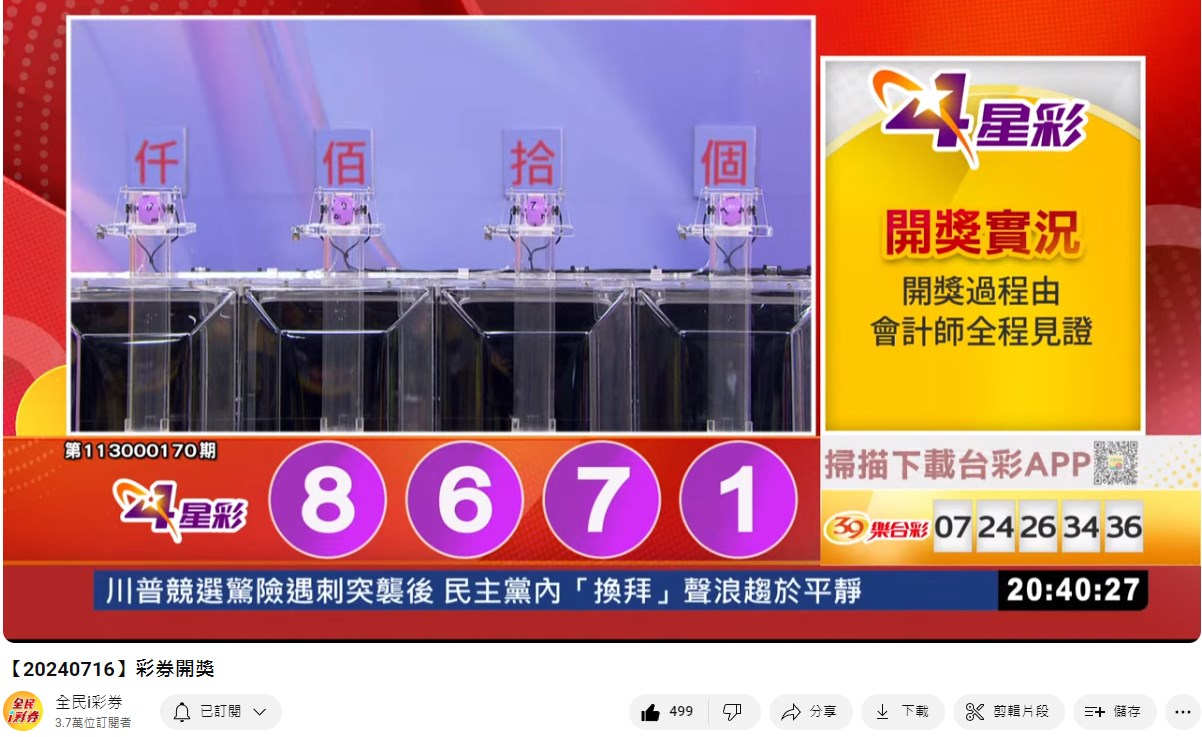 備註: 台彩因給全民兌獎方便,會在電視節目播完後,於全民i彩券YT官方頻道