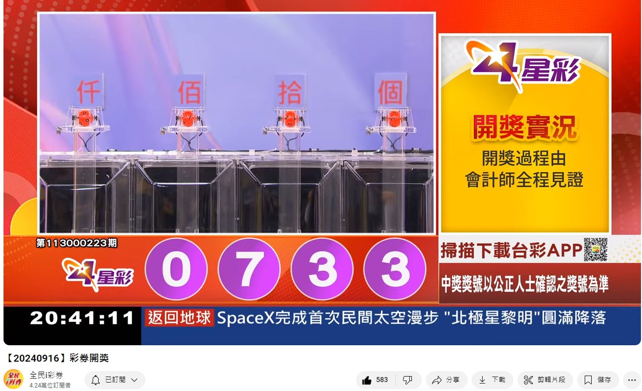 備註: 台彩因給全民兌獎方便,會在電視節目播完後,於全民i彩券YT官方頻道