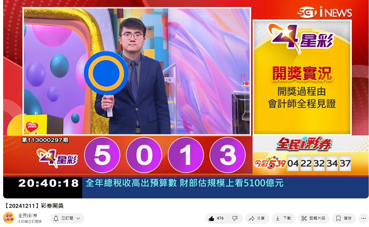 備註: 台彩因給全民兌獎方便,會在電視節目播完後,於全民i彩券YT官方頻道