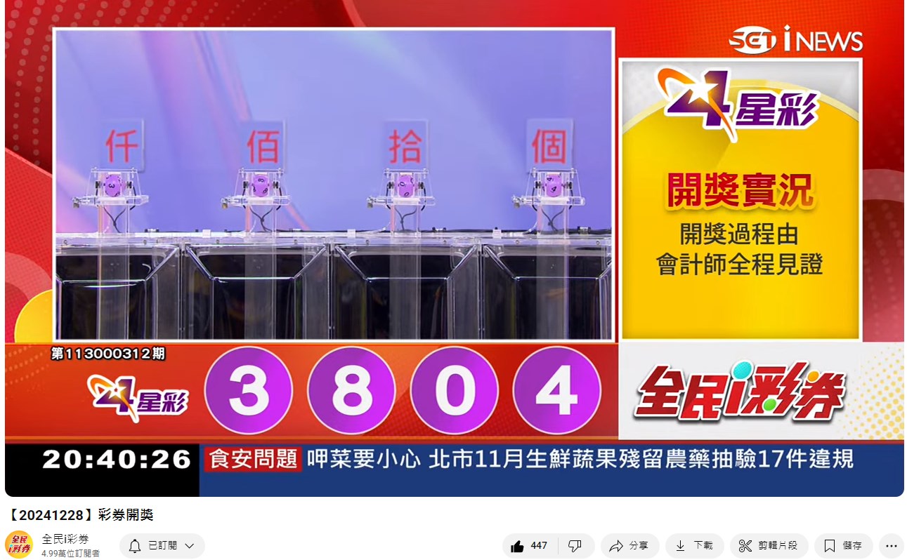 113年12月20日即時開獎 來自全民i彩券YT [三立新聞網SETN][12月21日重播]