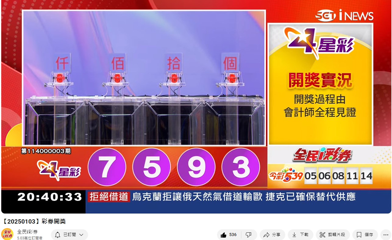 專區【全民i彩券】台灣彩券開獎實況轉播 威力彩、今彩539、三星彩、四星彩 |三立新聞網 SETN.com - YouTube