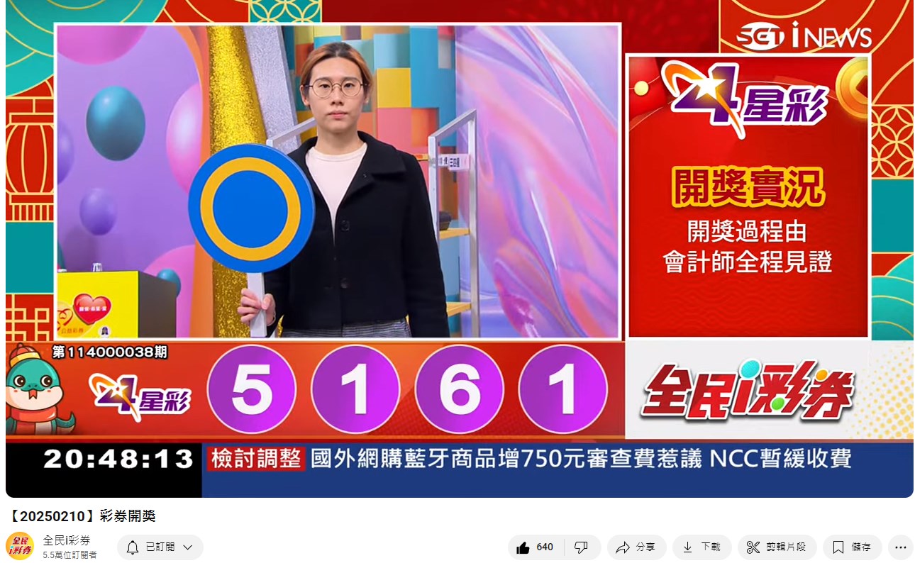 備註: 台彩因給全民兌獎方便,會在電視節目播完後,於全民i彩券YT官方頻道