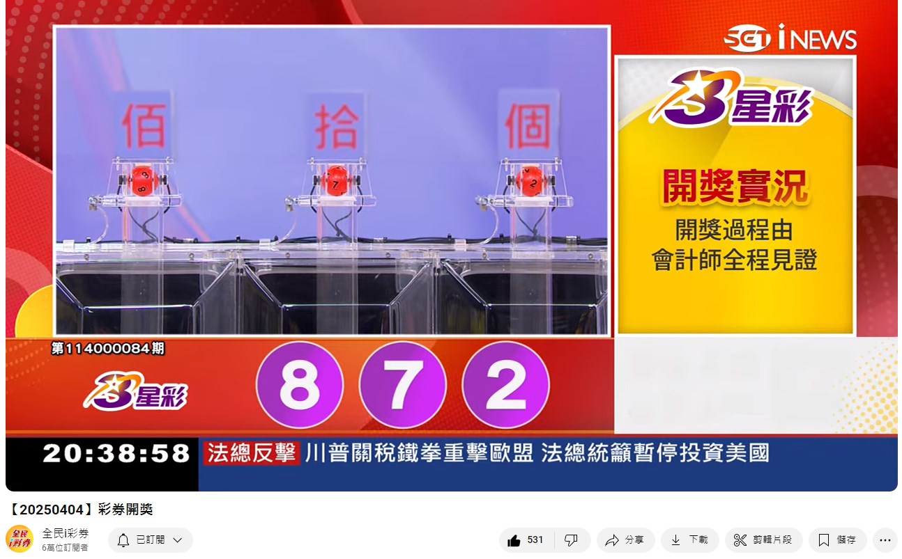 114年4月03日彩券開獎 來自全民i彩券YT [三立新聞網SETN][4月04日重播]