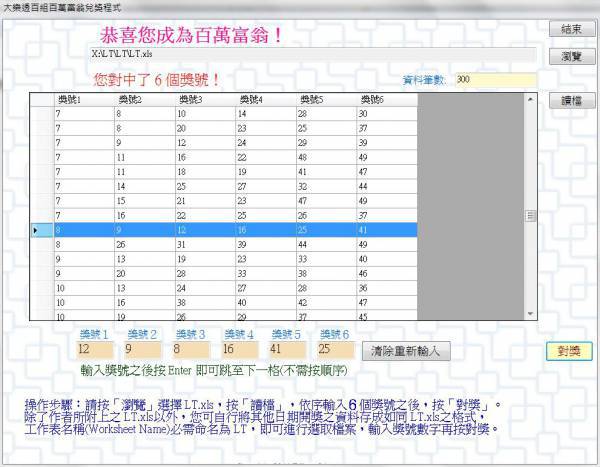 解壓縮之後,執行:大樂透百組百萬對獎.exe
