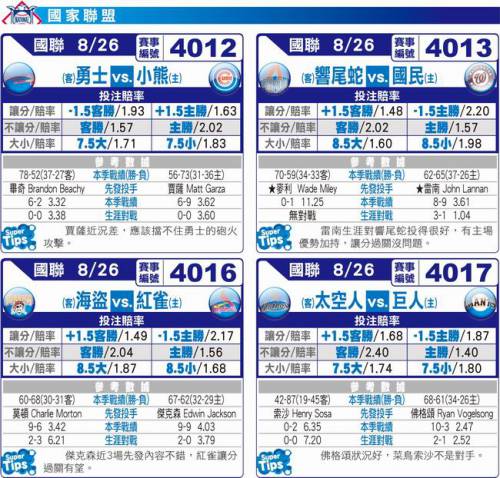 今天禮拜四,有9場 先貼一下蘋果的分析,不用買報紙了!!(參考就好)
