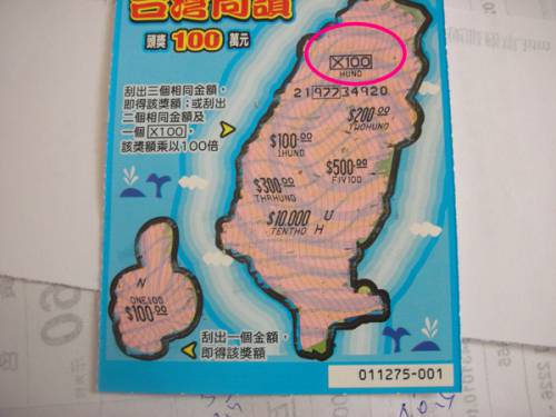 買了兩張~都有中~但其中一張不知道是中多少~英文代碼是中100~但是旁邊又有一個X100~大家幫我看看阿~